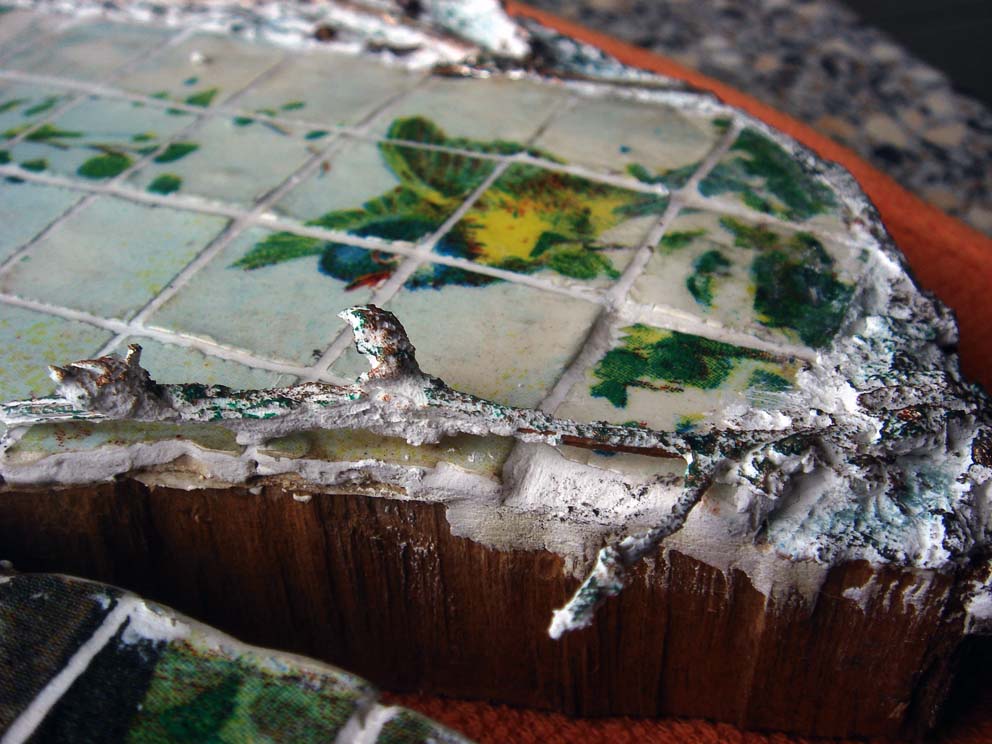 А пока можно поискать место для вашей мозаики на основе. Этот элемент будет скорее всего визуально самым тяжелым. Поэтому располагаем её в нижней части основы.